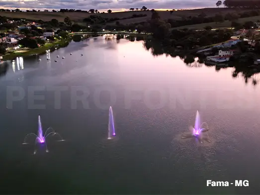 Já os projetos de Chafariz Flutuante em Rios e Lagos podem ser de pequeno, médio e grande porte com estrutura auto portantes fabricadas em aço inoxidável.